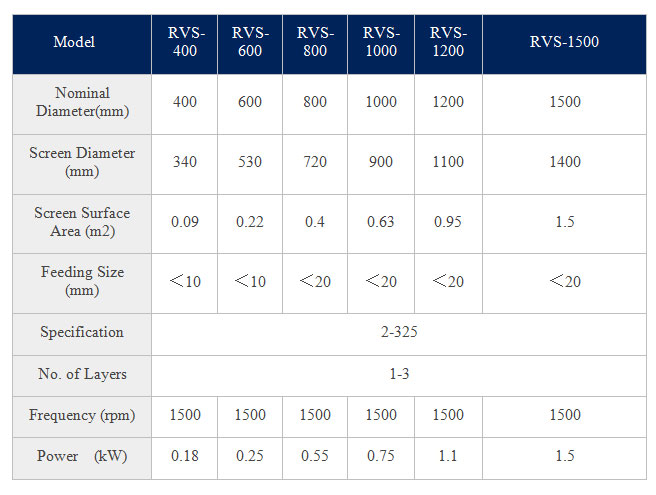 Rotary vibrating screen is designed as a high-precision screening machinery, it is composed of a upper cover, a screen box, a base and a vertical motor with eccentric weight installed at two ends. Rotary vibrating screen can be produced in horizontal, vertical, inclined motions by adjusting the upper and lower eccentric weight. Diameter also can be ranged from 400mm to 2000mm, with single or multiple screening decks, material can be total carbon steel, total stainless steel or material contact parts are stainless steel according to different product.